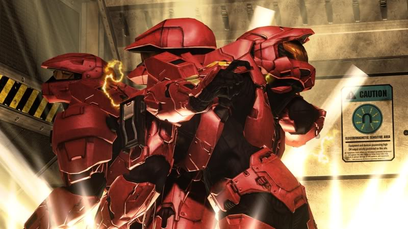 Hey guys, it’s actually three different spartans who were trying to disarm a bomb on Standoff. They were a little late, and the bomb explosion blew them into this pose. I thought it was kinda cool that they each had slightly different armor, and was fortunate to get the shot without any weapons in frame. I thought it was cool with the sign in the background that implied they were caught in some kind of magnetic storm. Anyway, there you have it.